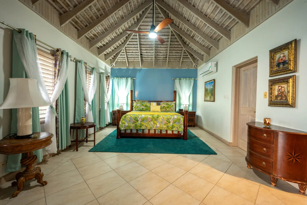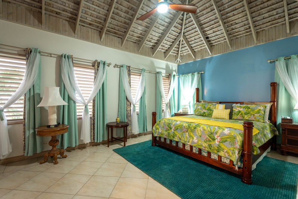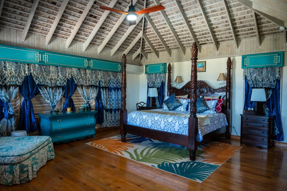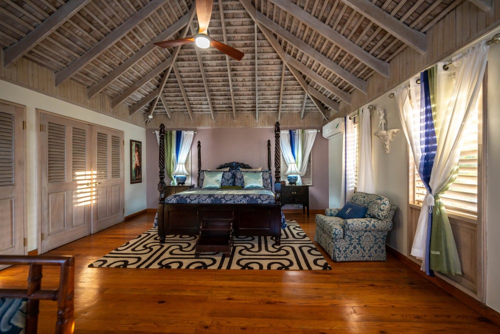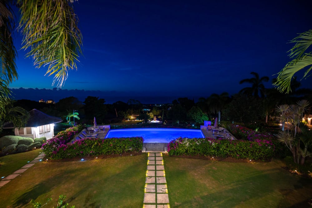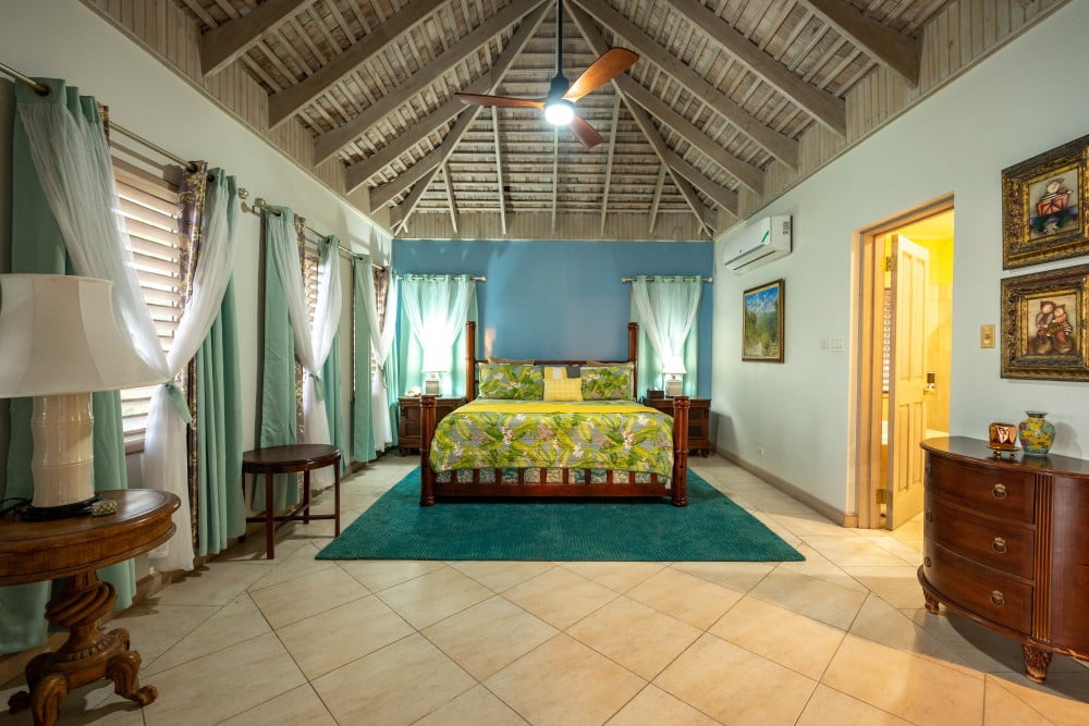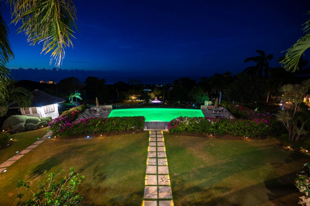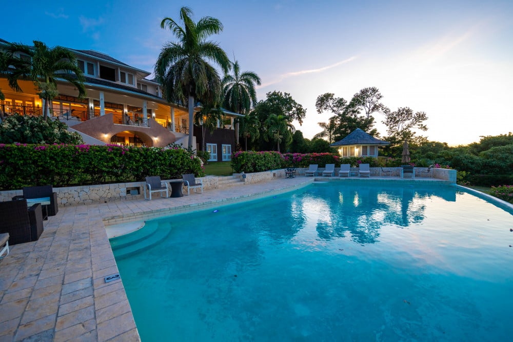 Inside, the immaculate and unique themed guest bedrooms are fully optimized for families and groups seeking the best 7 bedroom villas in Jamaica. The accommodation comprises a 7-bedroom, 7.5-bathroom configuration ideally suited for up to 16 guests. Accompanied by airy living spaces, a fully-equipped kitchen with breakfast bar, service kitchen and private bar, this Jamaica villa with private pool provides a classic oasis in which to unwind and entertain.