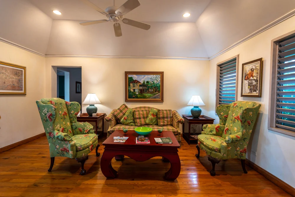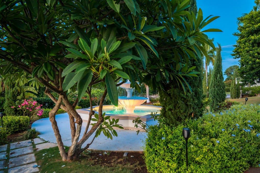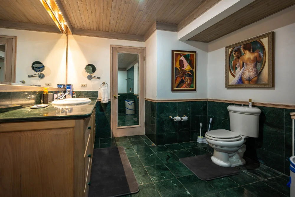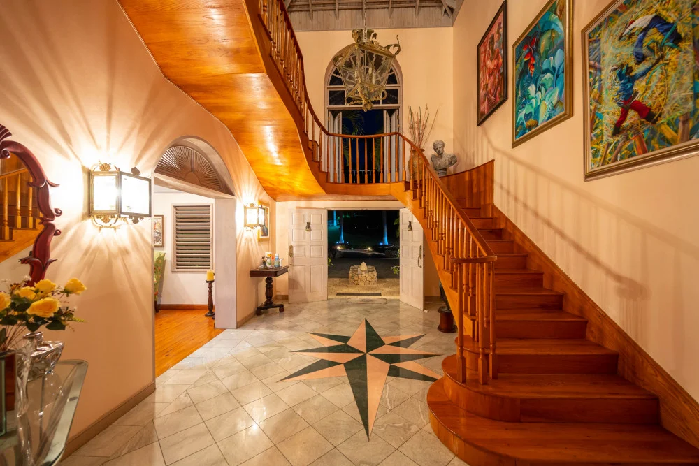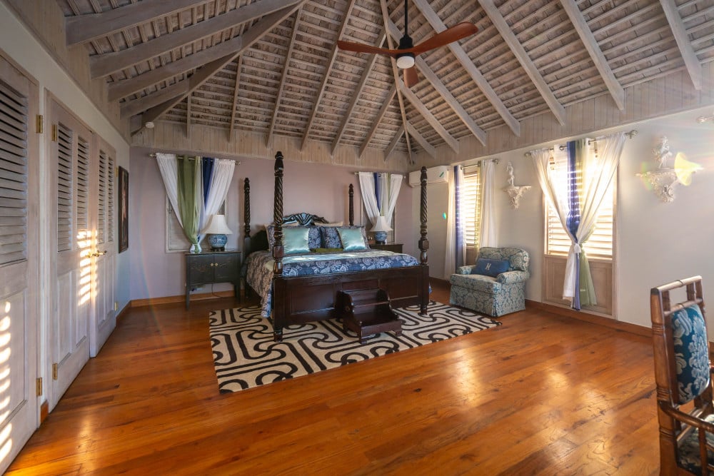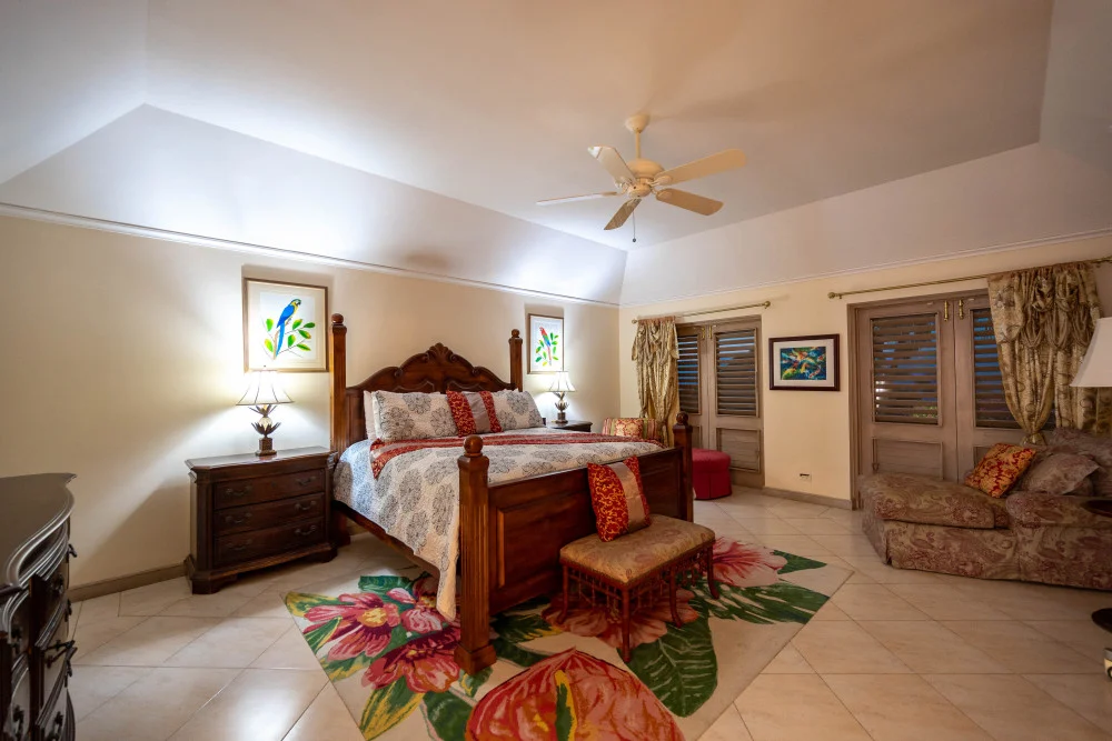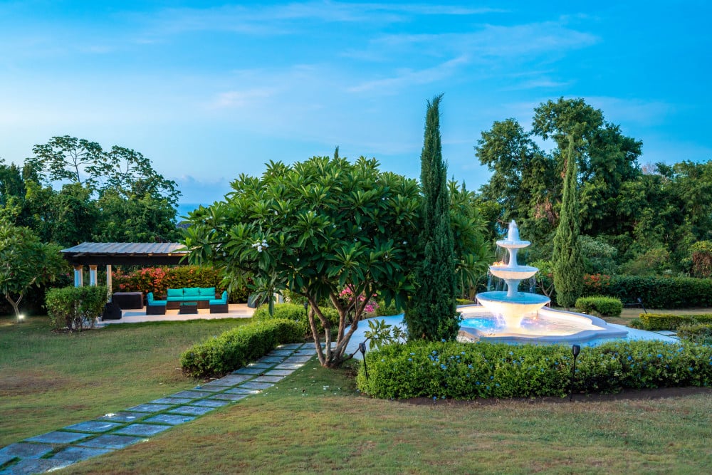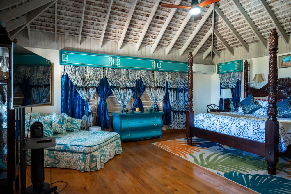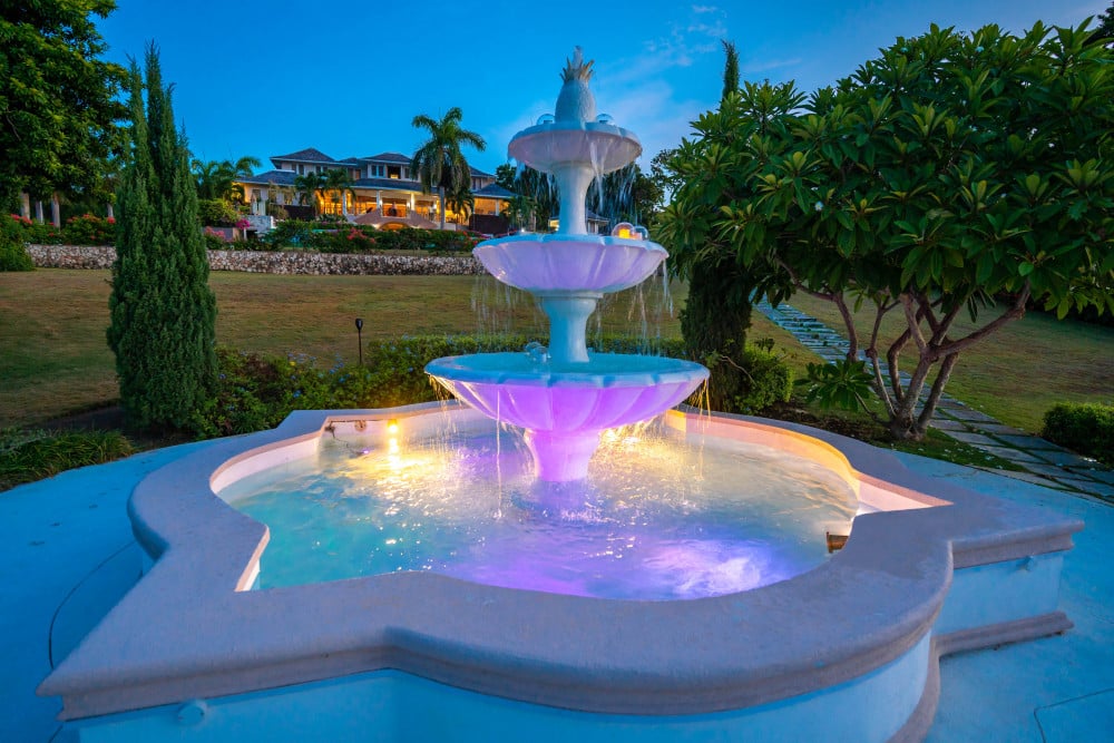 Inside, the immaculate and unique themed guest bedrooms are fully optimized for families and groups seeking the best 7 bedroom villas in Jamaica. The accommodation comprises a 7-bedroom, 7.5-bathroom configuration ideally suited for up to 16 guests. Accompanied by airy living spaces, a fully-equipped kitchen with breakfast bar, service kitchen and private bar, this Jamaica villa with private pool provides a classic oasis in which to unwind and entertain.