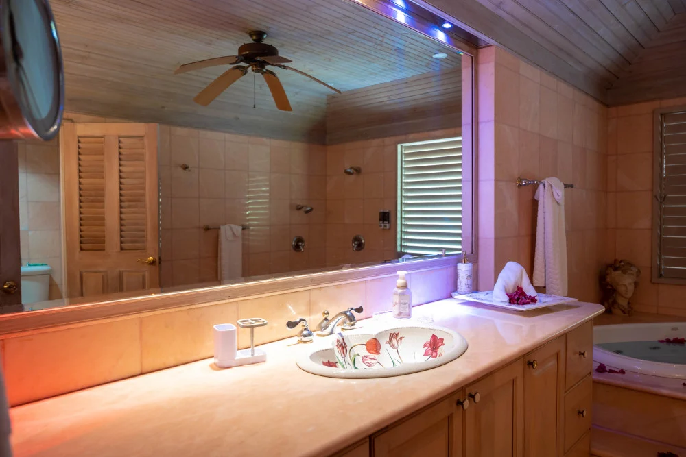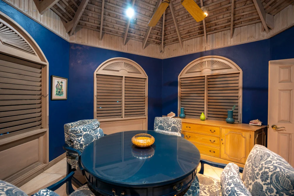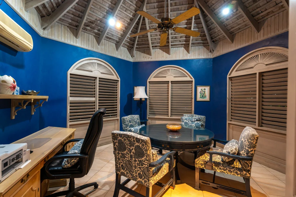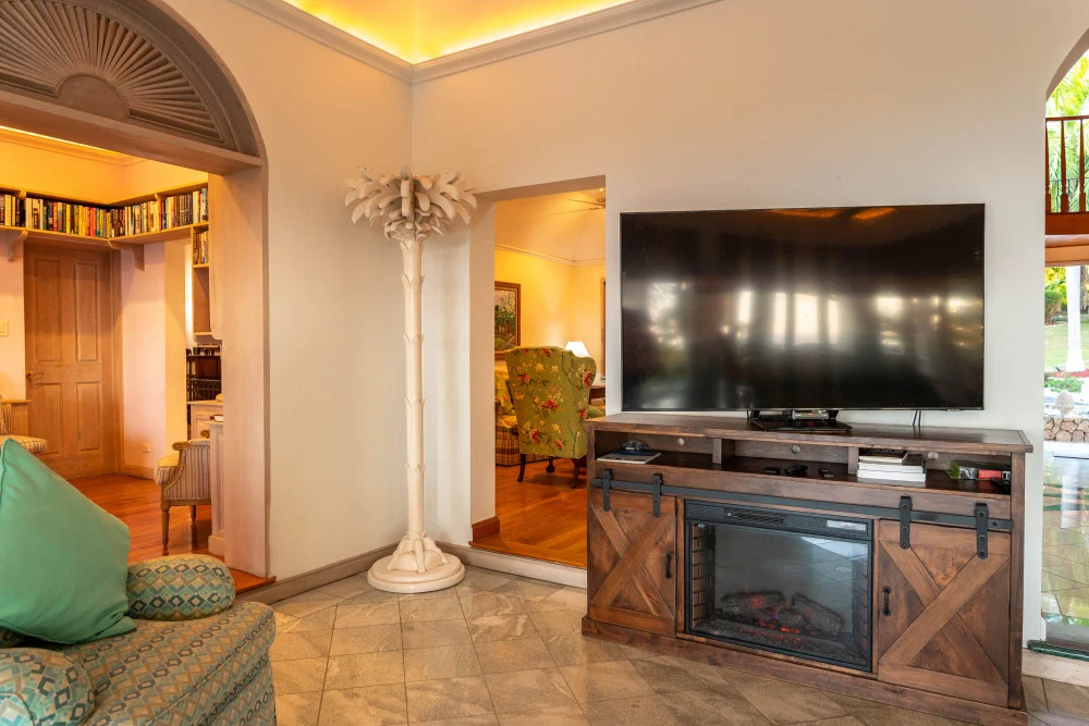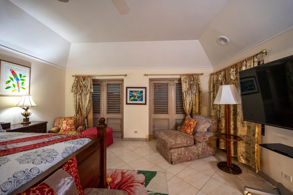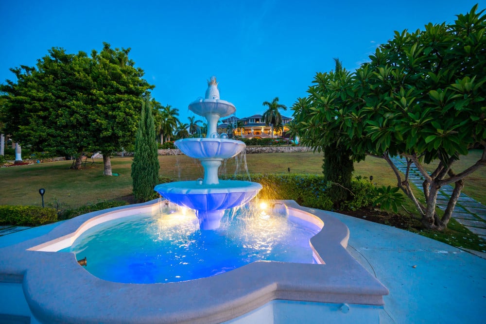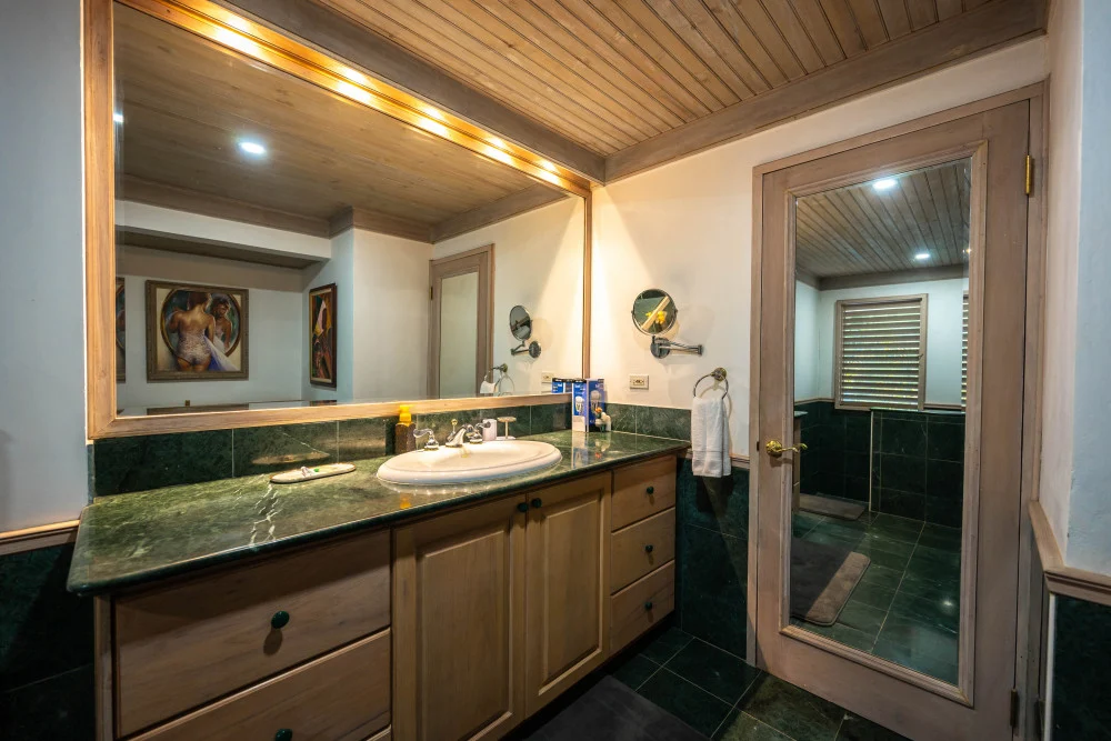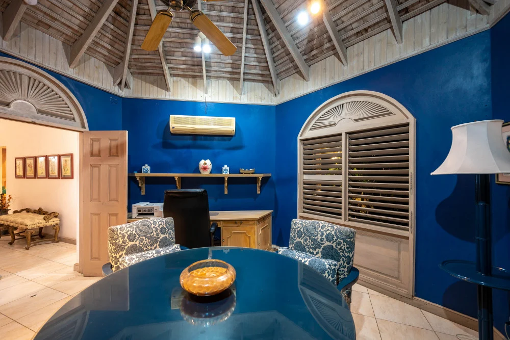 Inside, the immaculate and unique themed guest bedrooms are fully optimized for families and groups seeking the best 7 bedroom villas in Jamaica. The accommodation comprises a 7-bedroom, 7.5-bathroom configuration ideally suited for up to 16 guests. Accompanied by airy living spaces, a fully-equipped kitchen with breakfast bar, service kitchen and private bar, this Jamaica villa with private pool provides a classic oasis in which to unwind and entertain.