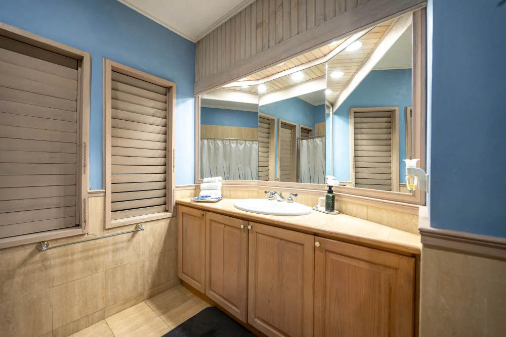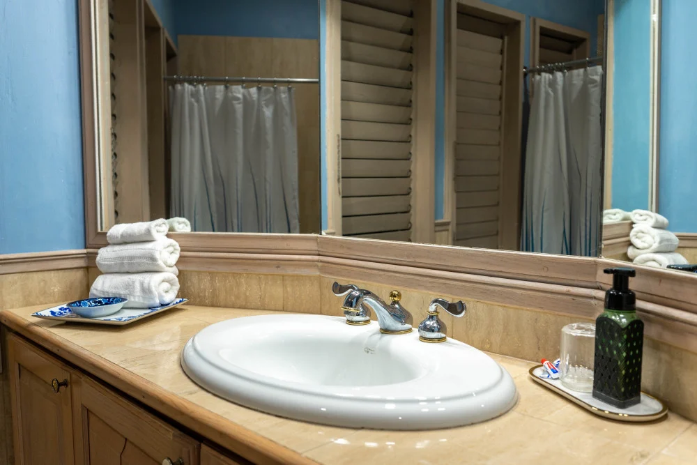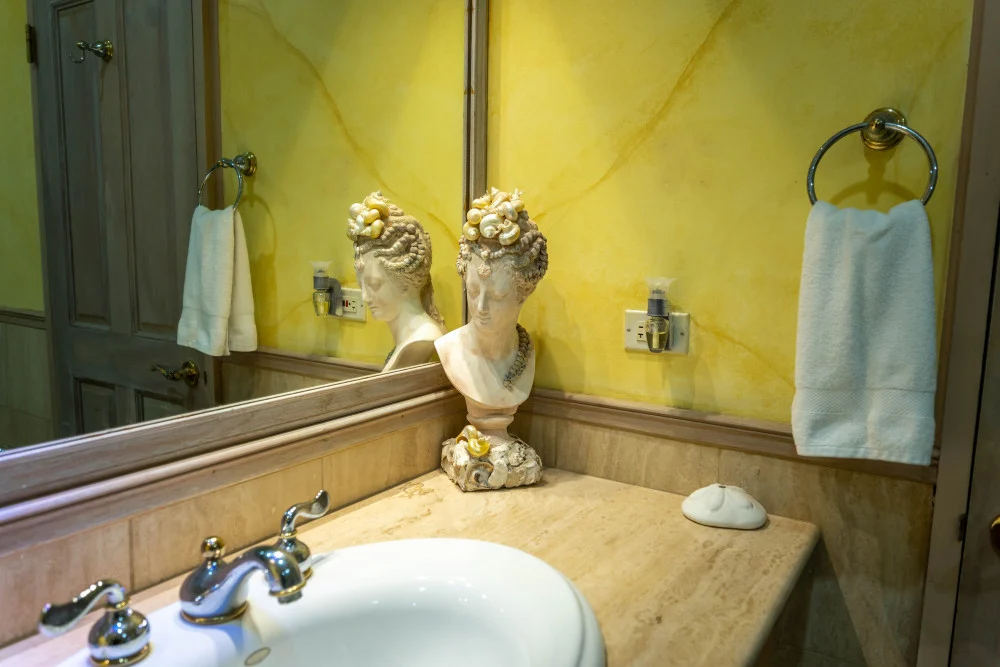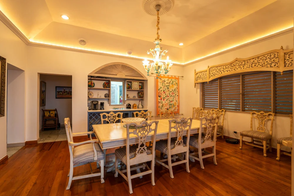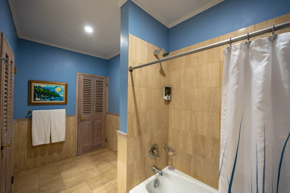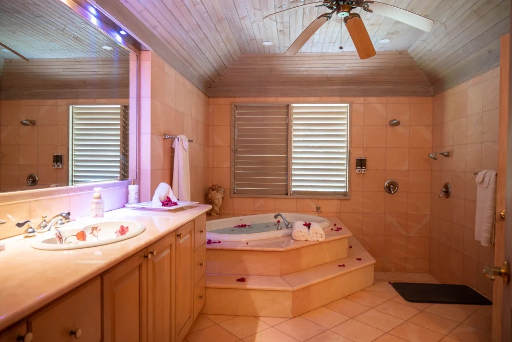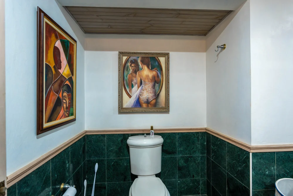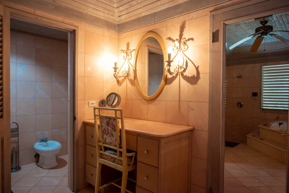 Inside, the immaculate and unique themed guest bedrooms are fully optimized for families and groups seeking the best 7 bedroom villas in Jamaica. The accommodation comprises a 7-bedroom, 7.5-bathroom configuration ideally suited for up to 16 guests. Accompanied by airy living spaces, a fully-equipped kitchen with breakfast bar, service kitchen and private bar, this Jamaica villa with private pool provides a classic oasis in which to unwind and entertain.