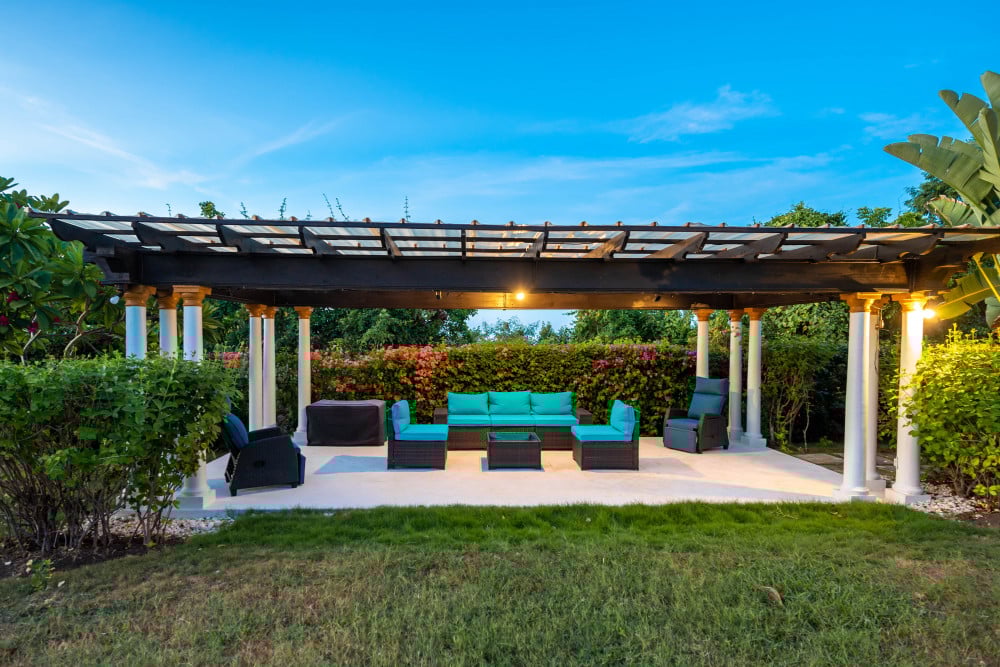 Pergola with seating area