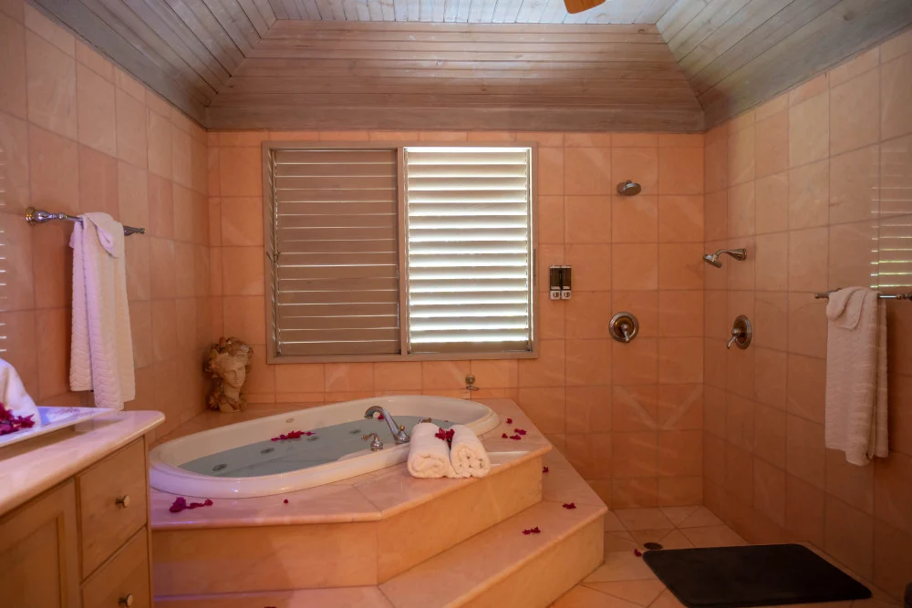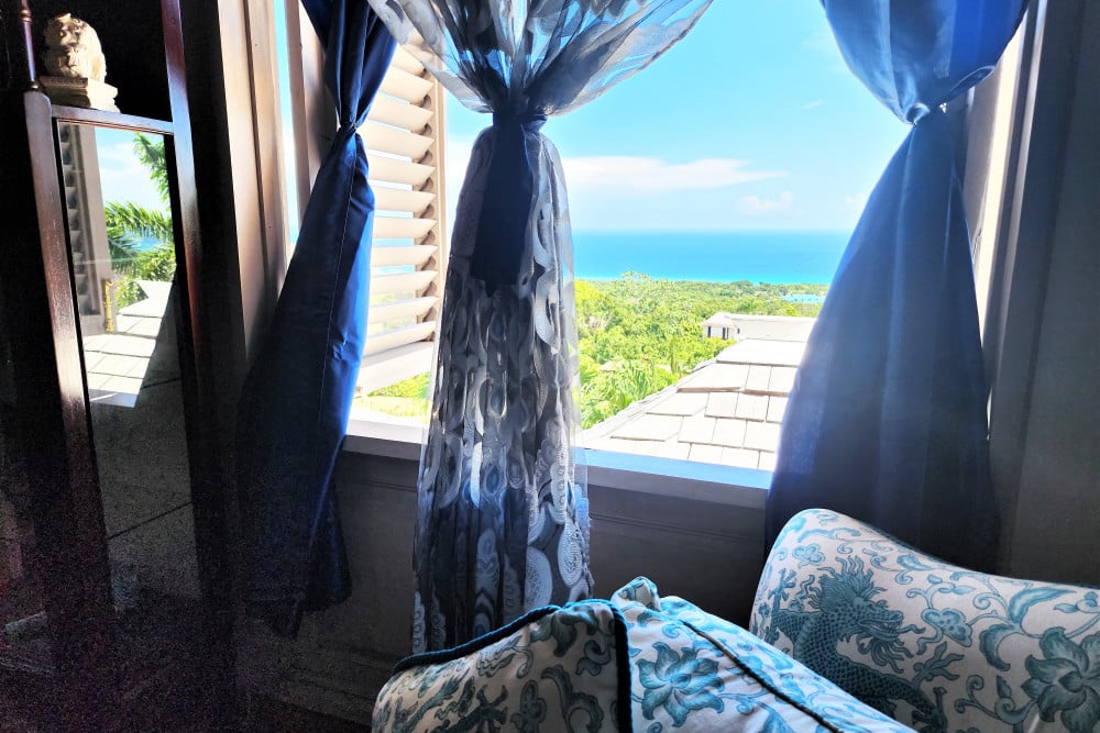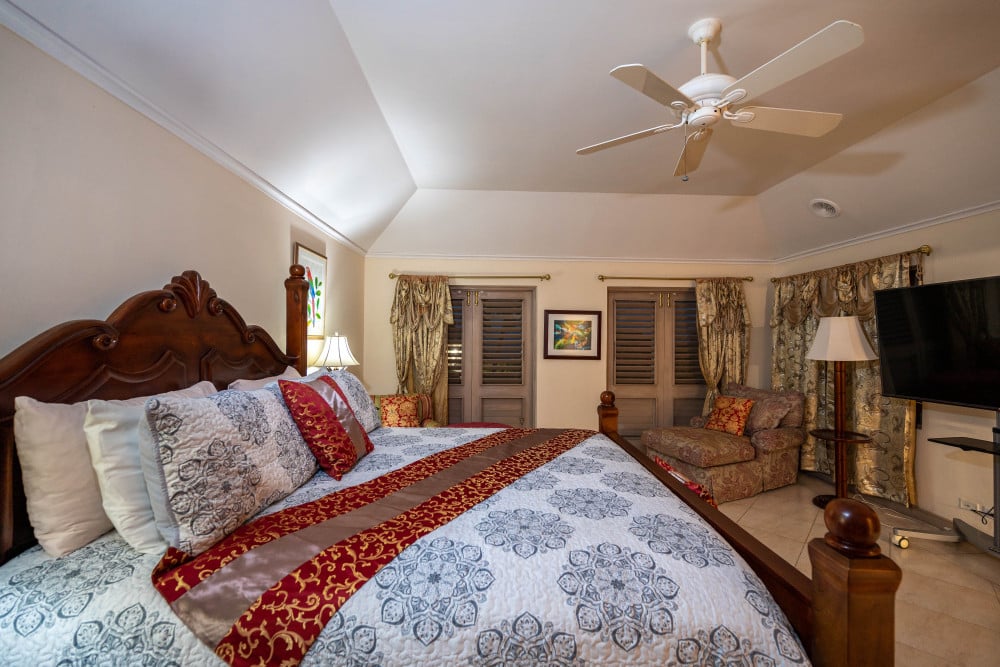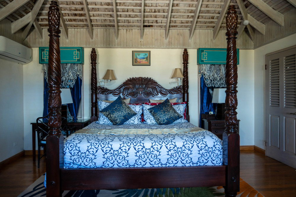 The Queen Bedroom - An ocean-view king-size bedroom, located on the upper floor, with opulent soft furnishings and offering an elegant en-suite with private Jacuzzi.