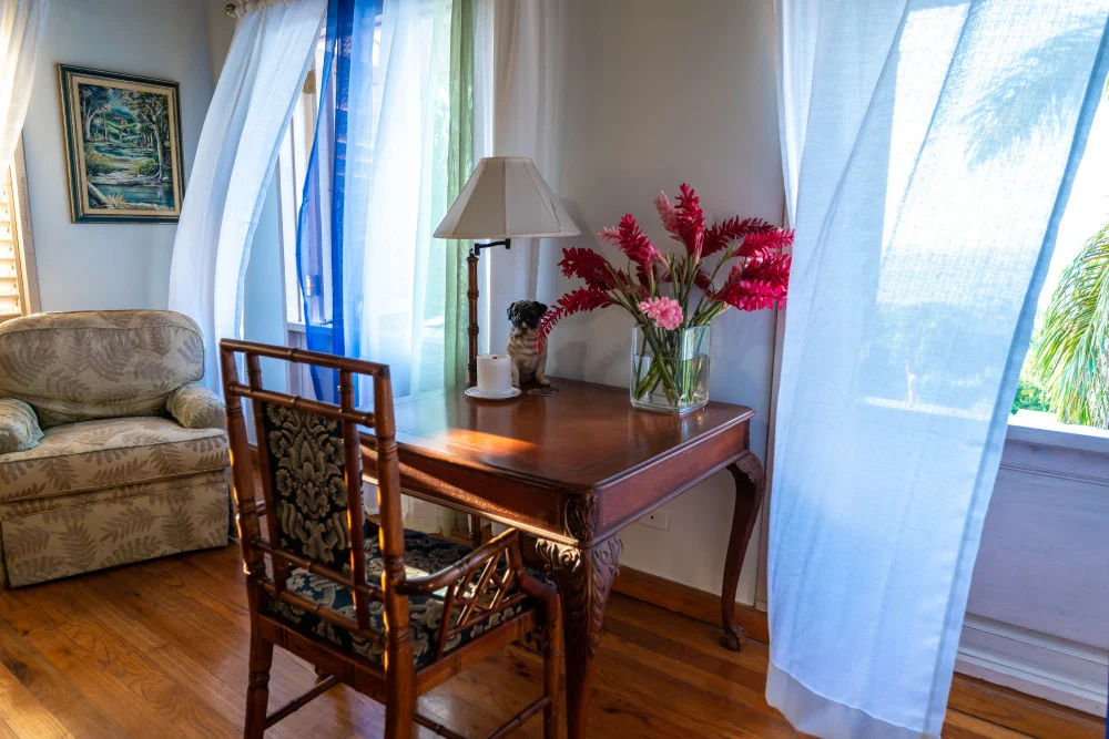 The Duchess Bedroom - A sophisticated 3rd floor suite offering poolside and garden views alongside a full en-suite bathroom.