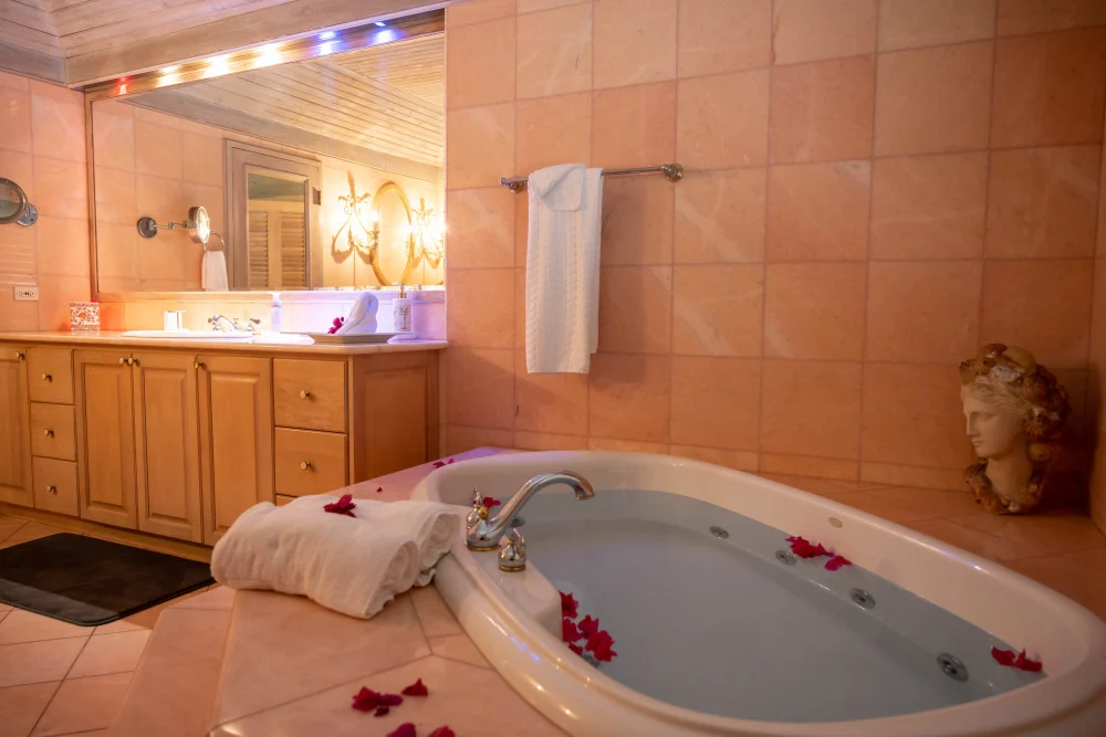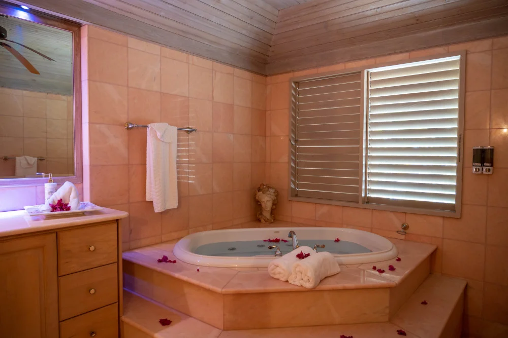 The Royal Bedroom - A regal ocean-view balcony suite on the 2nd floor with king-size bed and beautiful en-suite bathroom with Jacuzzi.